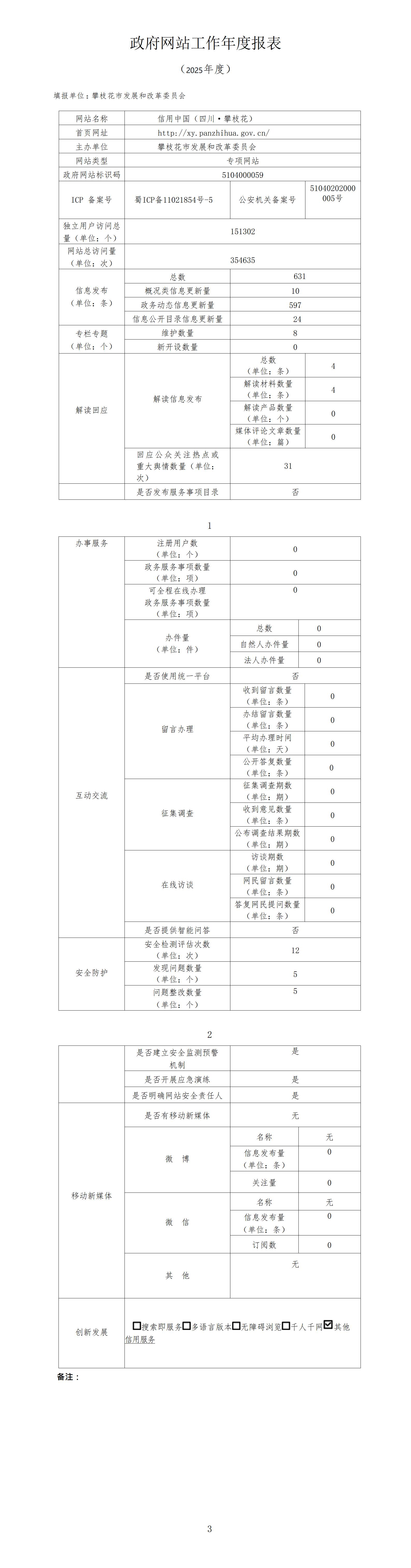 攀枝花市信用中国(四川·攀枝花)网站工作年度报表(2025年度)