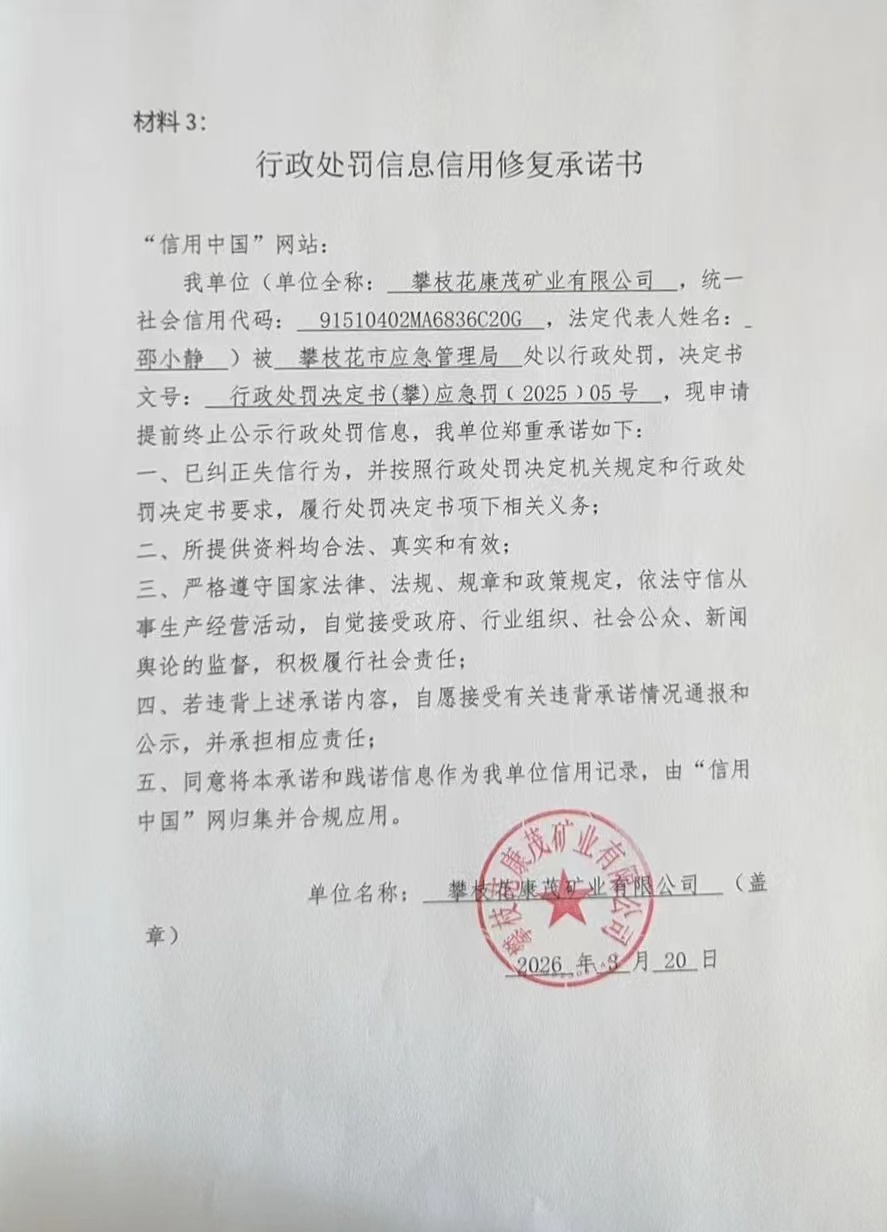 信用修复承诺书