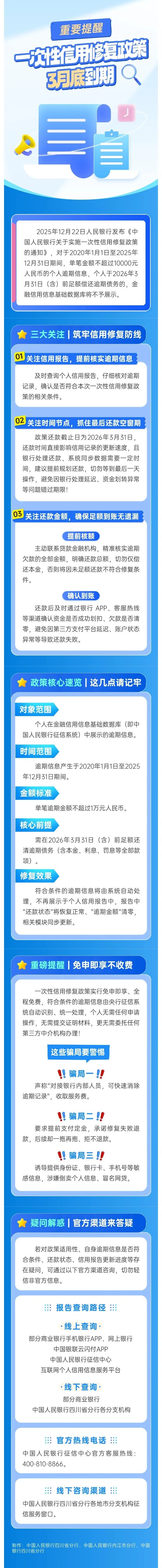 重要提醒!一次性信用修复政策3月底到期,切勿错过